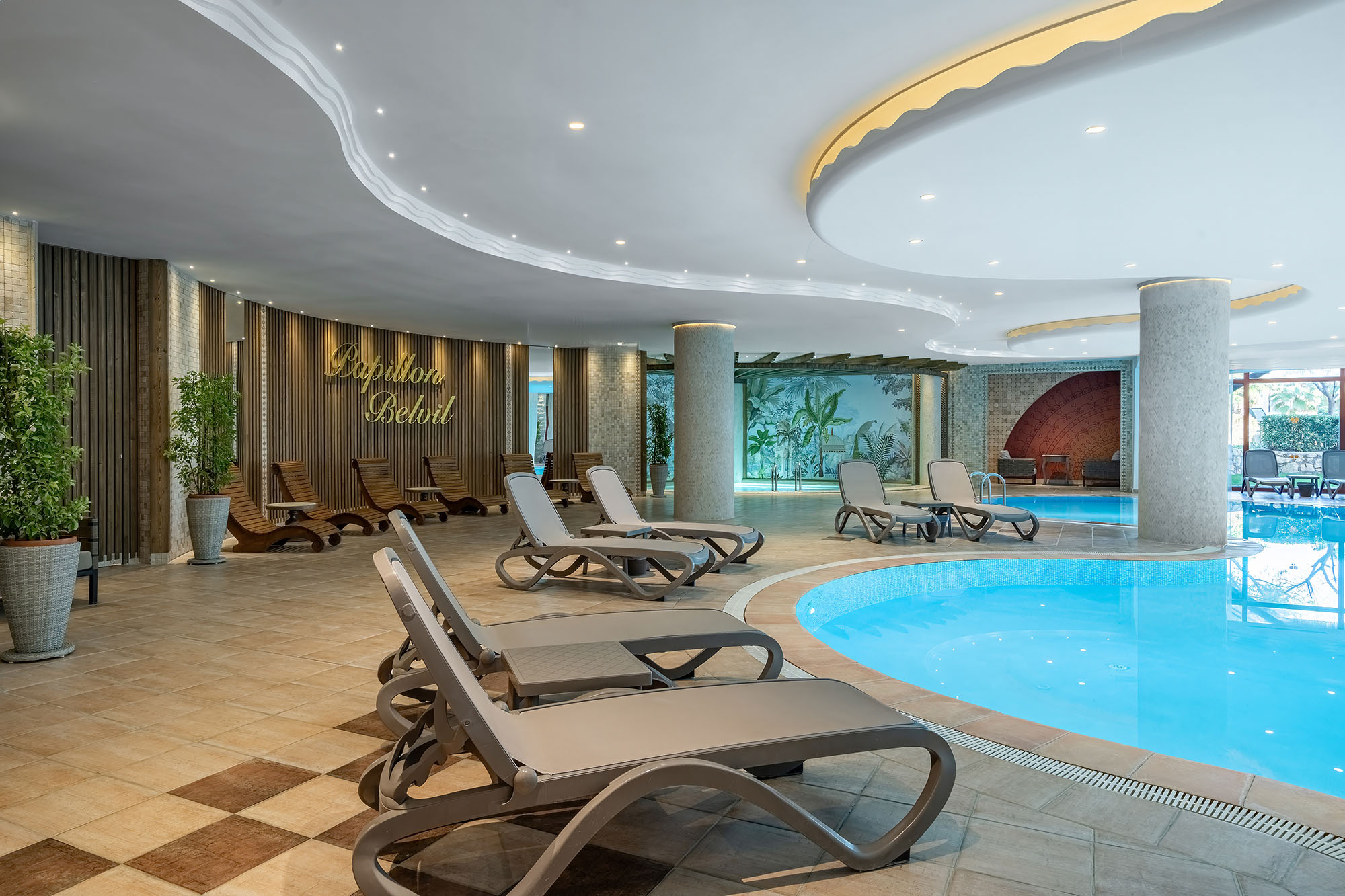 Kapalı havuzumuz, her mevsim yüzme keyfini sürdürmek isteyen misafirler için konforlu bir alan sunar. Tatlı su sistemi ve 142 cm derinliğiyle akıcı bir yüzme deneyimi sağlar. Yumuşak aydınlatması ve dinlenme alanlarıyla sakin bir atmosfer oluşturur.