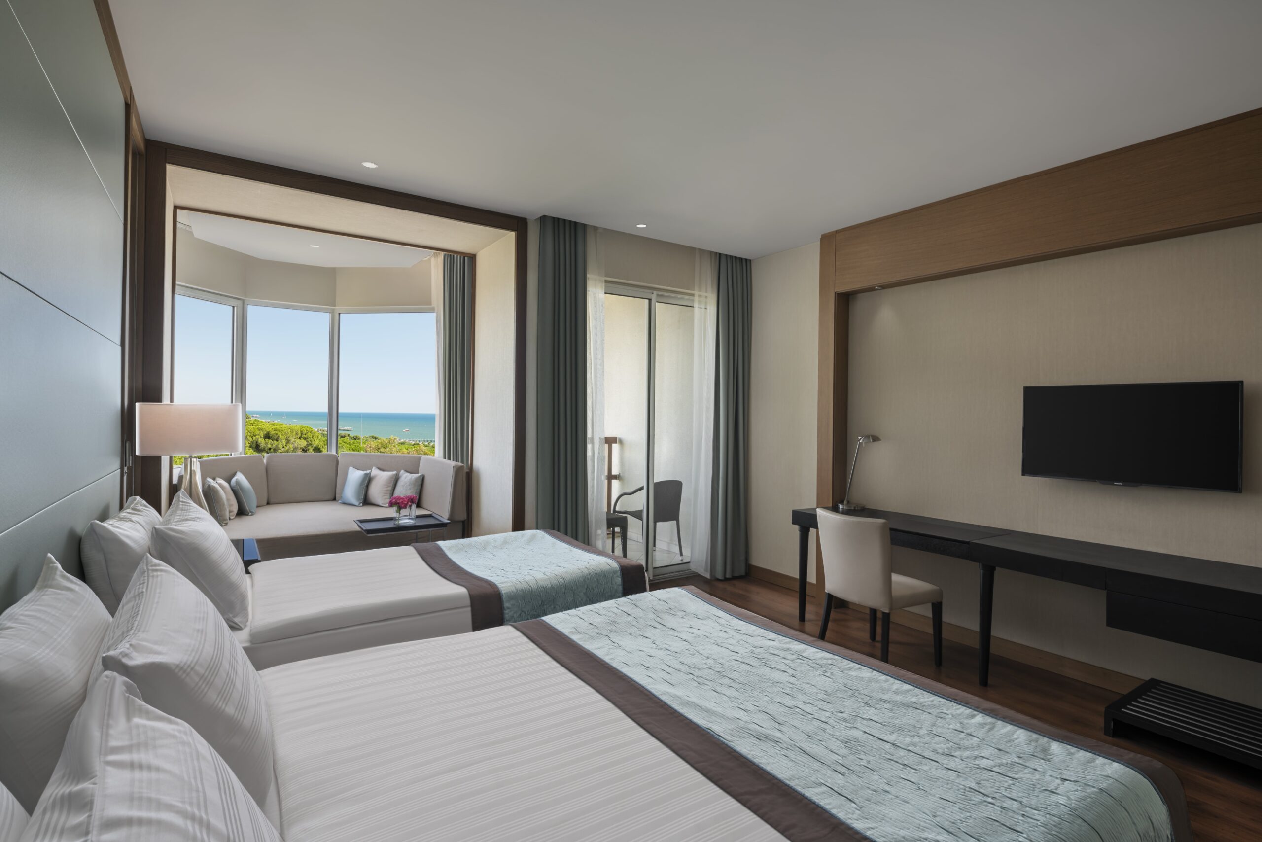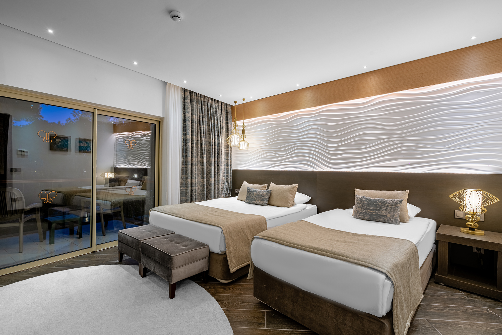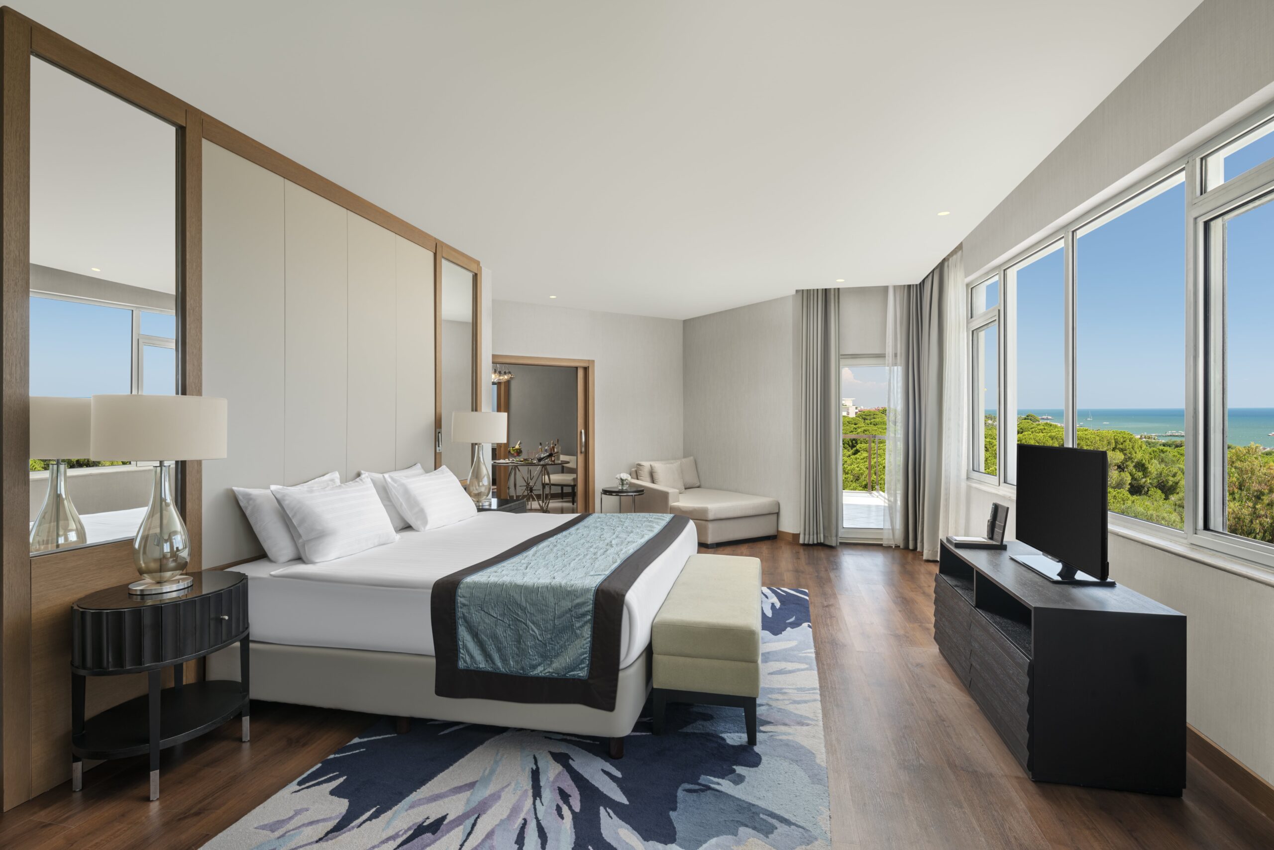 Zarafet ve konfor, modern estetikle birlikte sakin bir uyum içinde bir araya gelir. Akdeniz ışığıyla aydınlanan odalar ve suitler, dengeli bir konfor anlayışıyla şekillenir.
