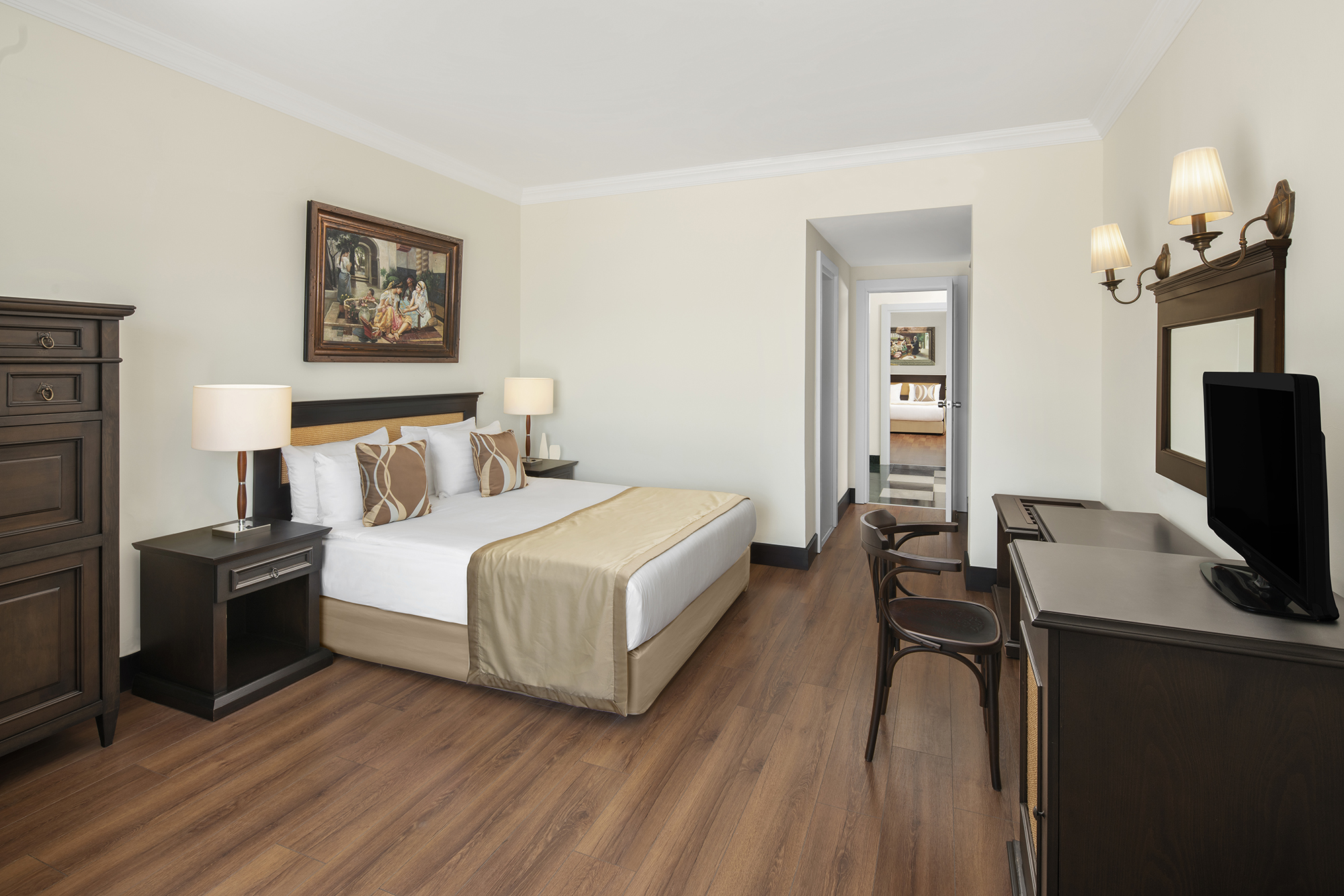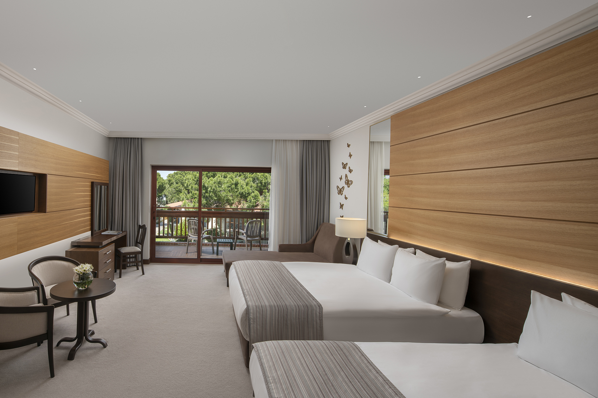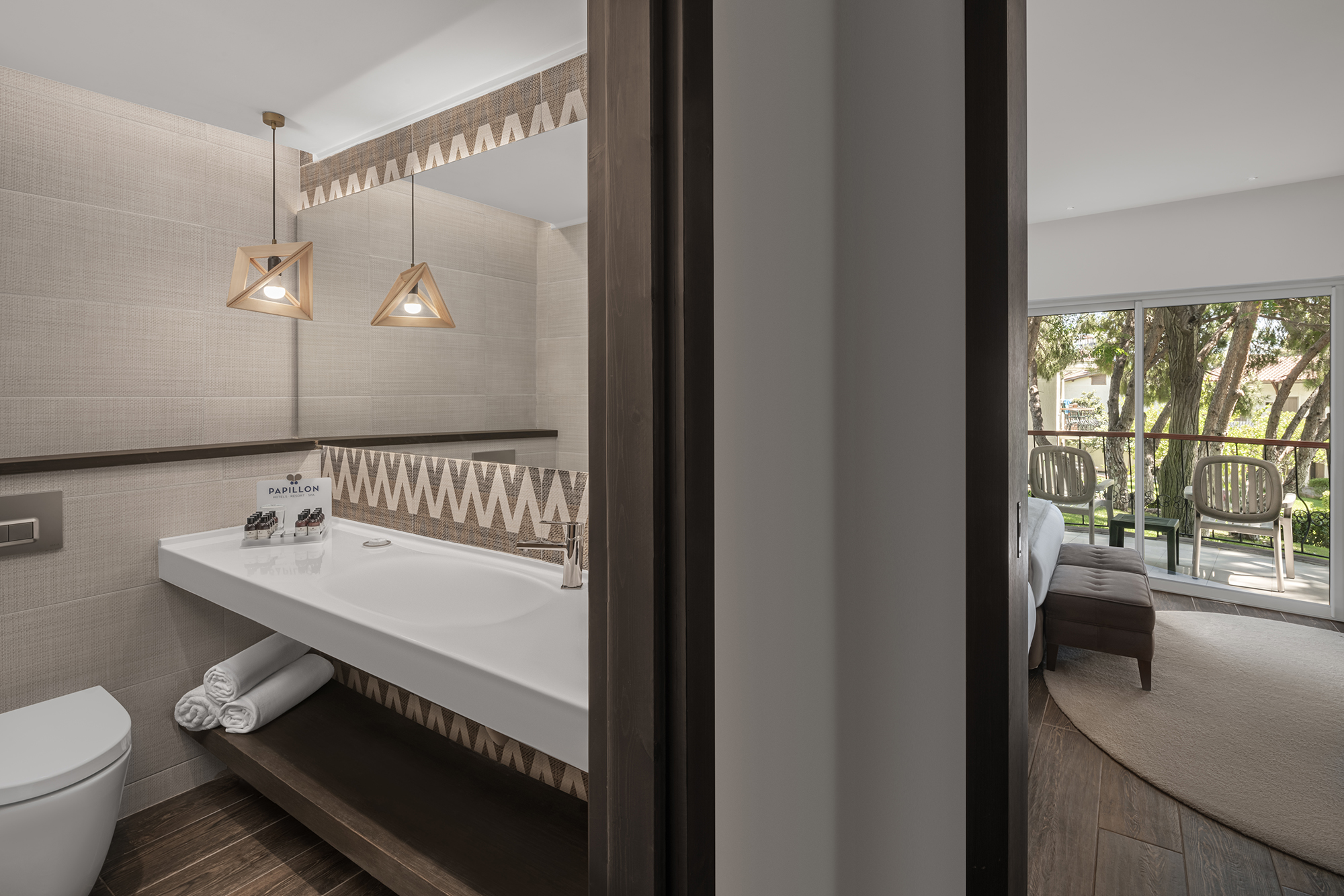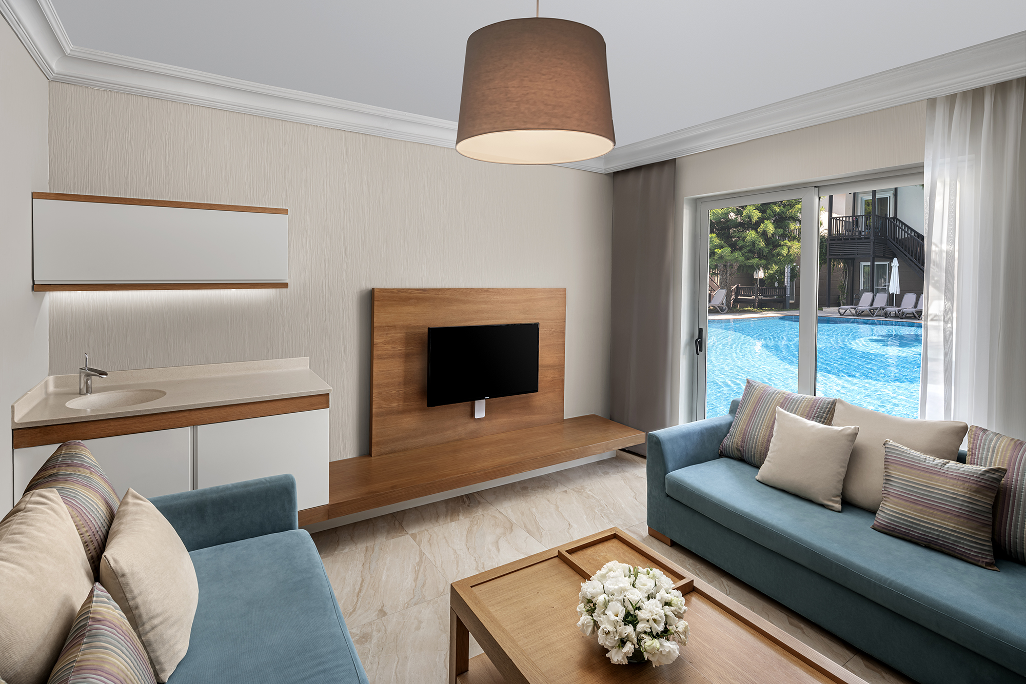 Zarafet ve konfor, modern estetikle birlikte sakin bir uyum içinde bir araya gelir. Akdeniz ışığıyla aydınlanan odalar ve suitler, dengeli bir konfor anlayışıyla şekillenir.