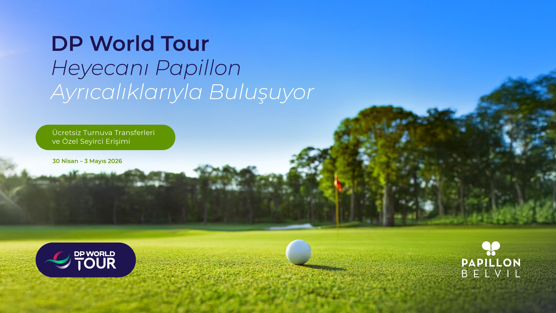 30 Nisan – 03 Mayıs tarihleri arasında Antalya’da gerçekleşecek DP World Tour Golf Şampiyonası boyunca Papillon Belvil’de konaklayarak turnuva heyecanını yakından deneyimleyin.