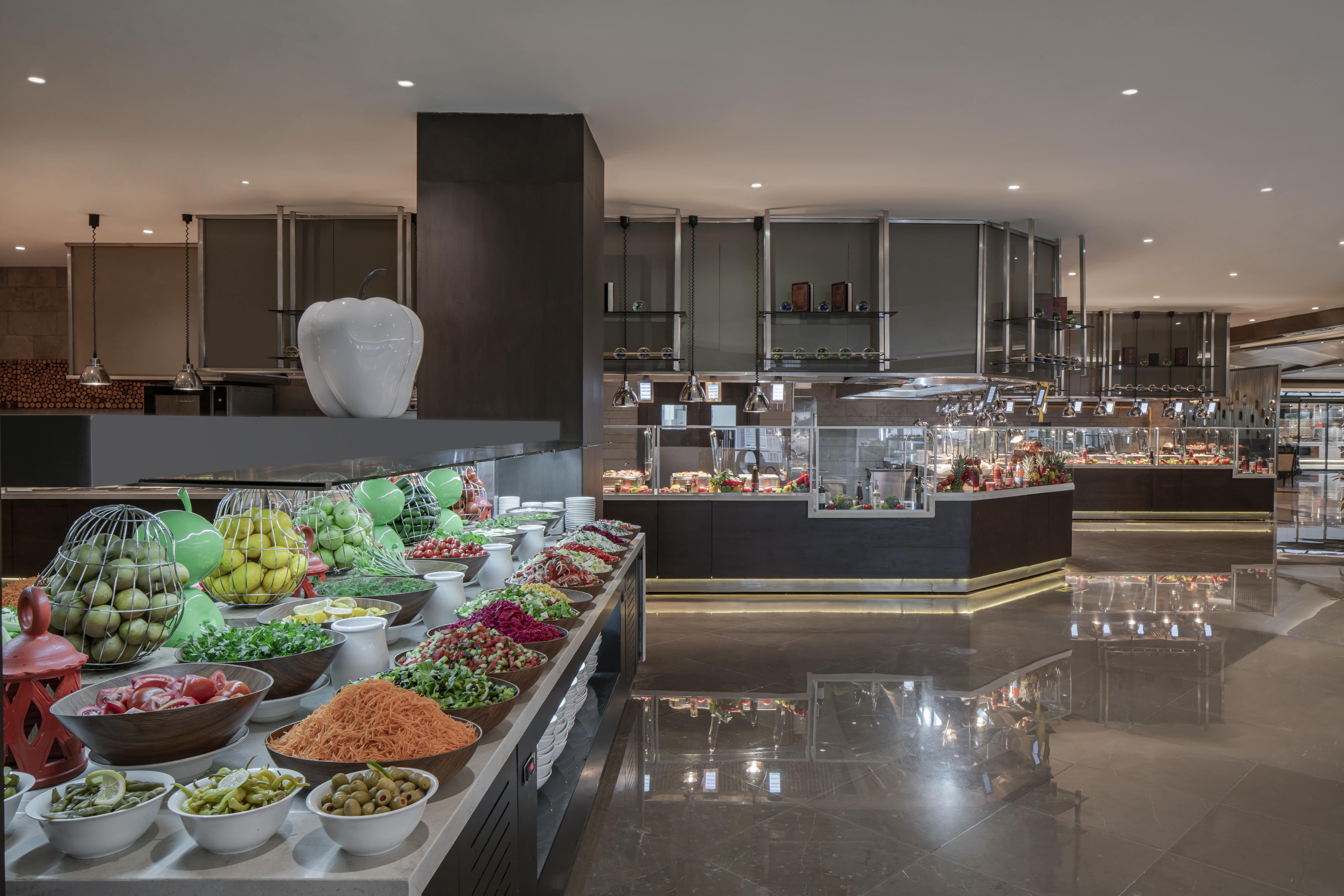 Mosaic Restaurant, günün farklı saatlerinde açık büfe düzeniyle hizmet verir.