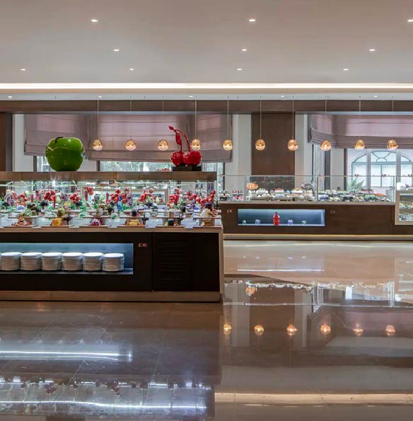 Geniş ve ferah alan düzeniyle tasarlanan Mosaic Restaurant, aileler ve farklı damak tercihlerine sahip misafirler için konforlu bir ortam sağlar. Açık büfe yapısı; taze ürünler, dengeli seçenekler ve rahat bir servis akışıyla her öğünü keyifli bir yemek deneyimine dönüştürür.