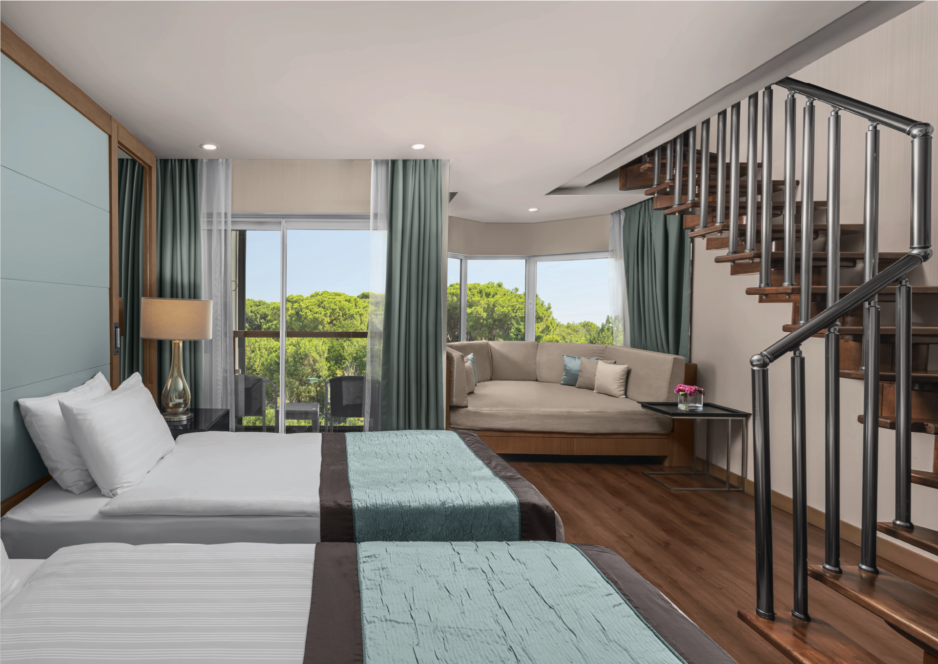Geniş aileler için iki katlı bir yerleşim sunan Duplex Family Room, birlikte geçirilen zaman ile kişisel alan ihtiyacını dengeli biçimde bir araya getirir.