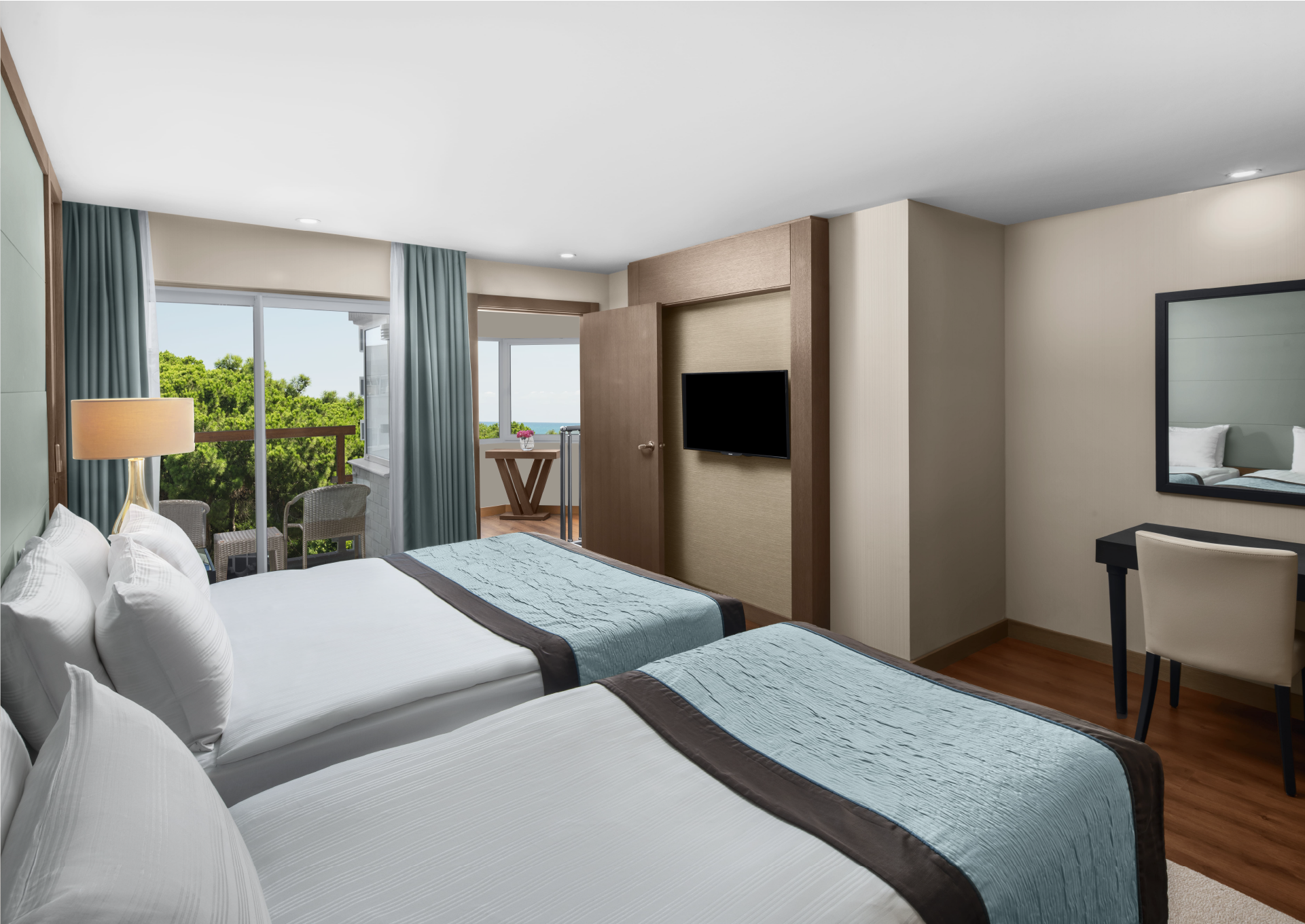 Duplex Family Room, geniş ailelerin birlikte ve dengeli bir konaklama düzeni içinde yer alabilmesi için kurgulanır. İki katlı planlama, ebeveynler ve çocuklar için ayrı yaşam alanları oluştururken, aile içindeki yakınlığı doğal biçimde korur. İç düzen, günün farklı anlarında hem bir arada olmayı hem de kişisel alan ihtiyacını destekler.