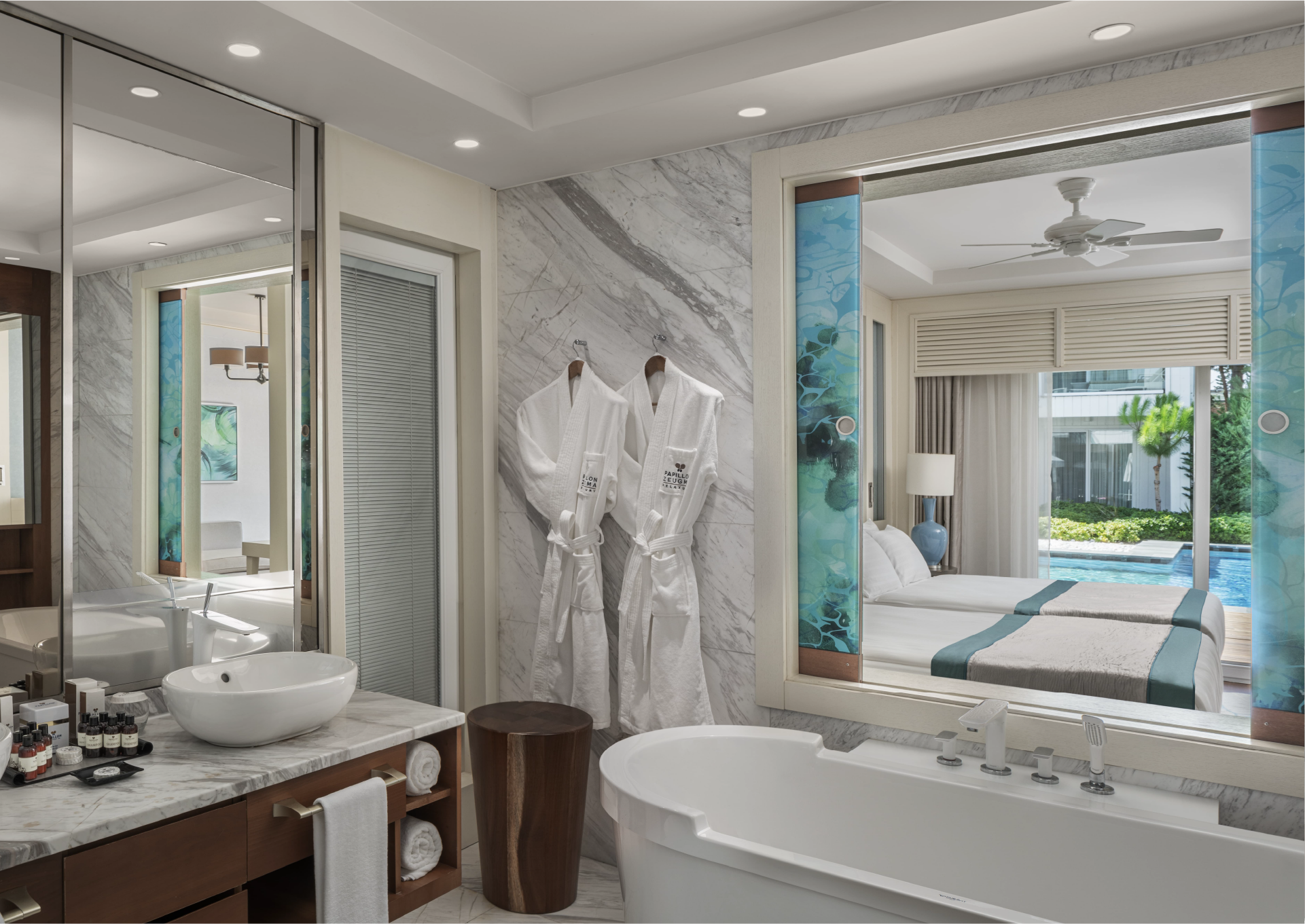 Doğrudan havuz bağlantısına sahip Luxury Pool Suite, yeşil doku içinde konumlanan yapısıyla rahat ve dengeli bir konaklama düzeni sunar.