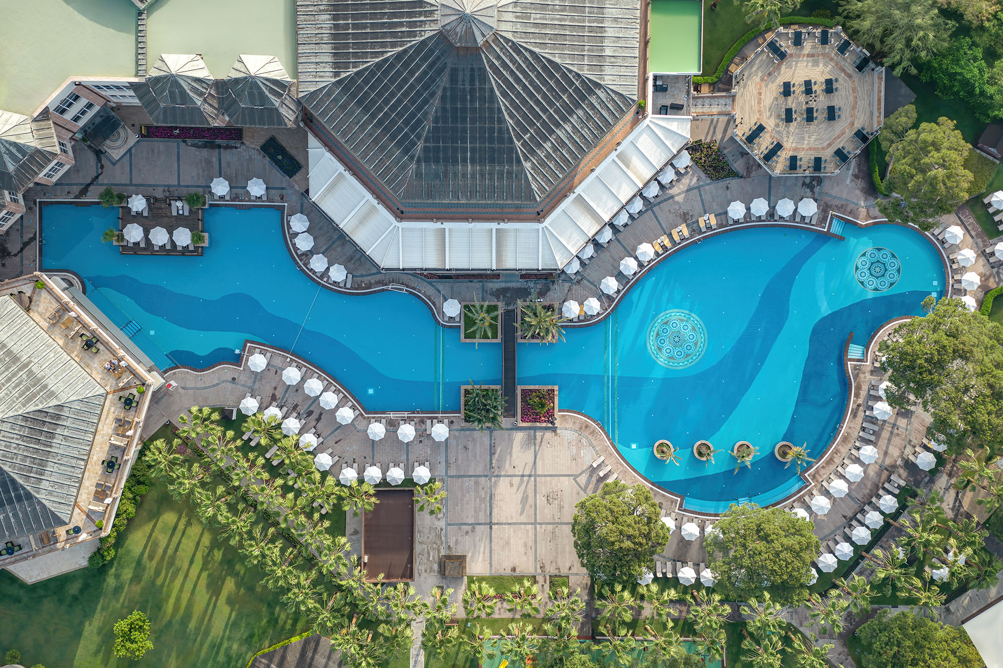 Açık bahçe havuzumuz, yemyeşil peyzajın içinde sakin bir yüzme alanı sunar. Tatlı su sistemi, yüksek derinliğiyle konforlu ve dengeli bir yüzme deneyimi keşfedeceksiniz. Havuzumuz doğayla bütünleşen şezlong yerleşimleriyle huzurlu bir atmosfer yaratır. Akdeniz esintisini, suyun dinginliğiyle birlikte en keyifli şekilde hissedeceksiniz.