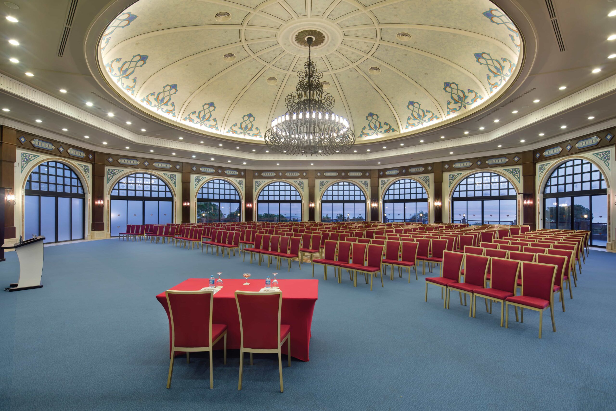 Yüksek tavanı ve geniş kapasitesiyle öne çıkan Turquoise Hall, iş toplantıları ve özel davetler için düzenli ve konforlu bir ortam sunar.