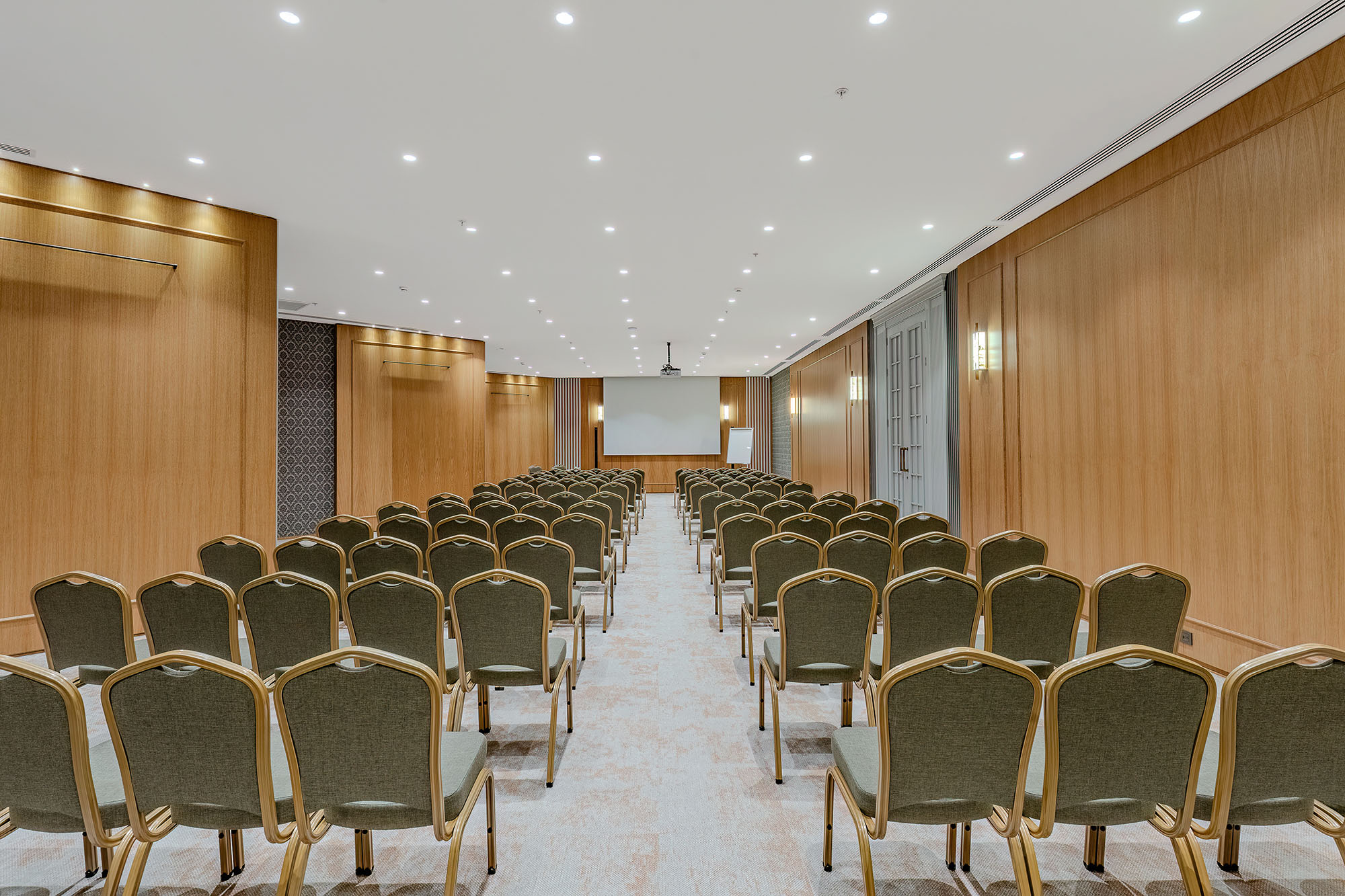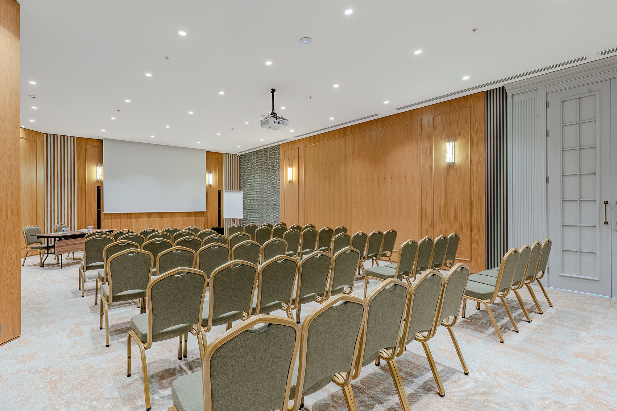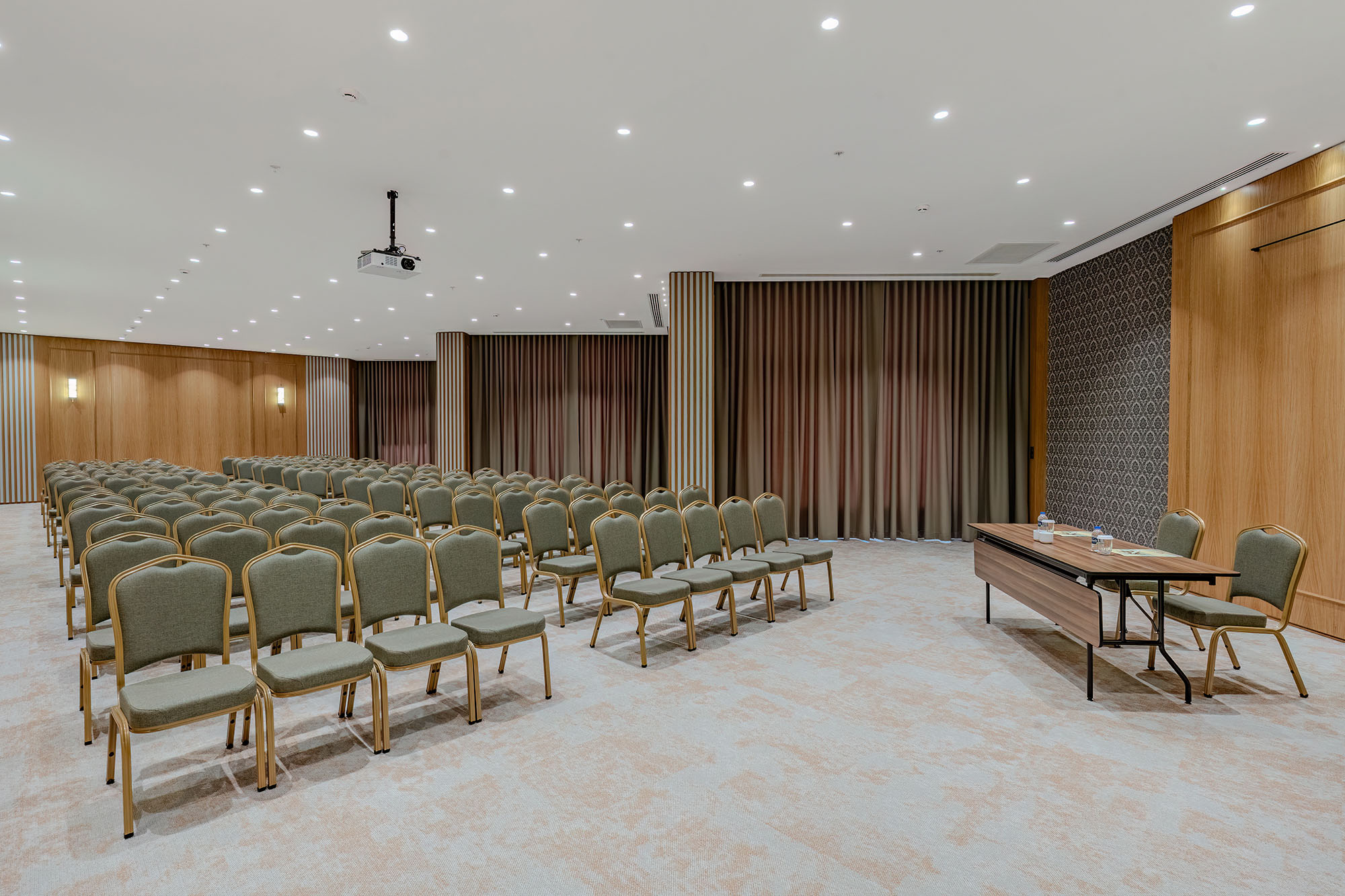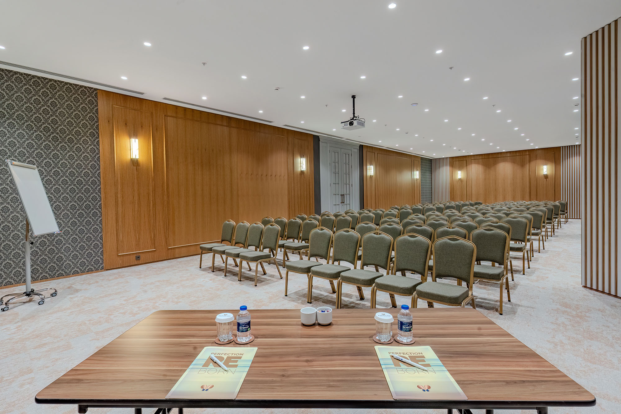 Conference Room III, daha geniş katılımlı toplantılar ve sunumlar için tasarlanmış ferah bir alandır. Açık plan yapısı ve rahat yerleşimi sayesinde farklı etkinlik formatlarına uyum sağlar. Katılımcı sayısının arttığı organizasyonlarda dahi konforlu ve düzenli bir ortam sunarak profesyonel etkinliklere güçlü bir zemin hazırlar.